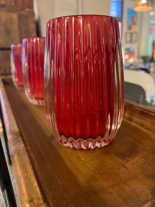 Jarron/Porta velas estriado granate