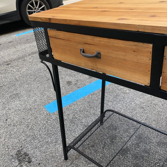 Consola natural madera y metal 2 cajones