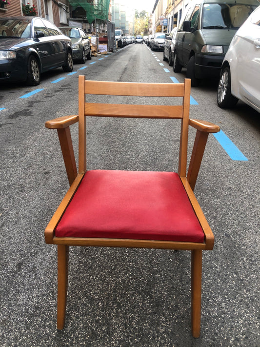 Silla madera asiento rojo
