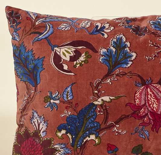 Cojín terciopelo rojizo flores