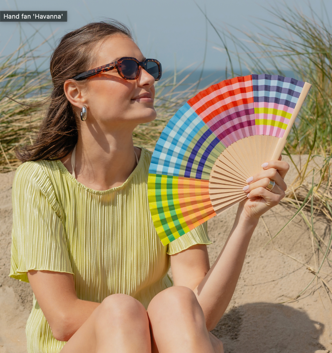 DESCRIPCION: abanico multicolor, con funda para guardarlo