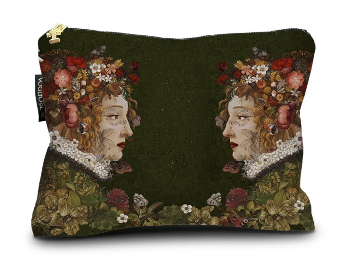 DESCRIPCION: bolso de mano con tela de terciopelo en vivos colores, anverso y reverso con motivo diferente pero relacionado. Dispone de cremallera de cierre