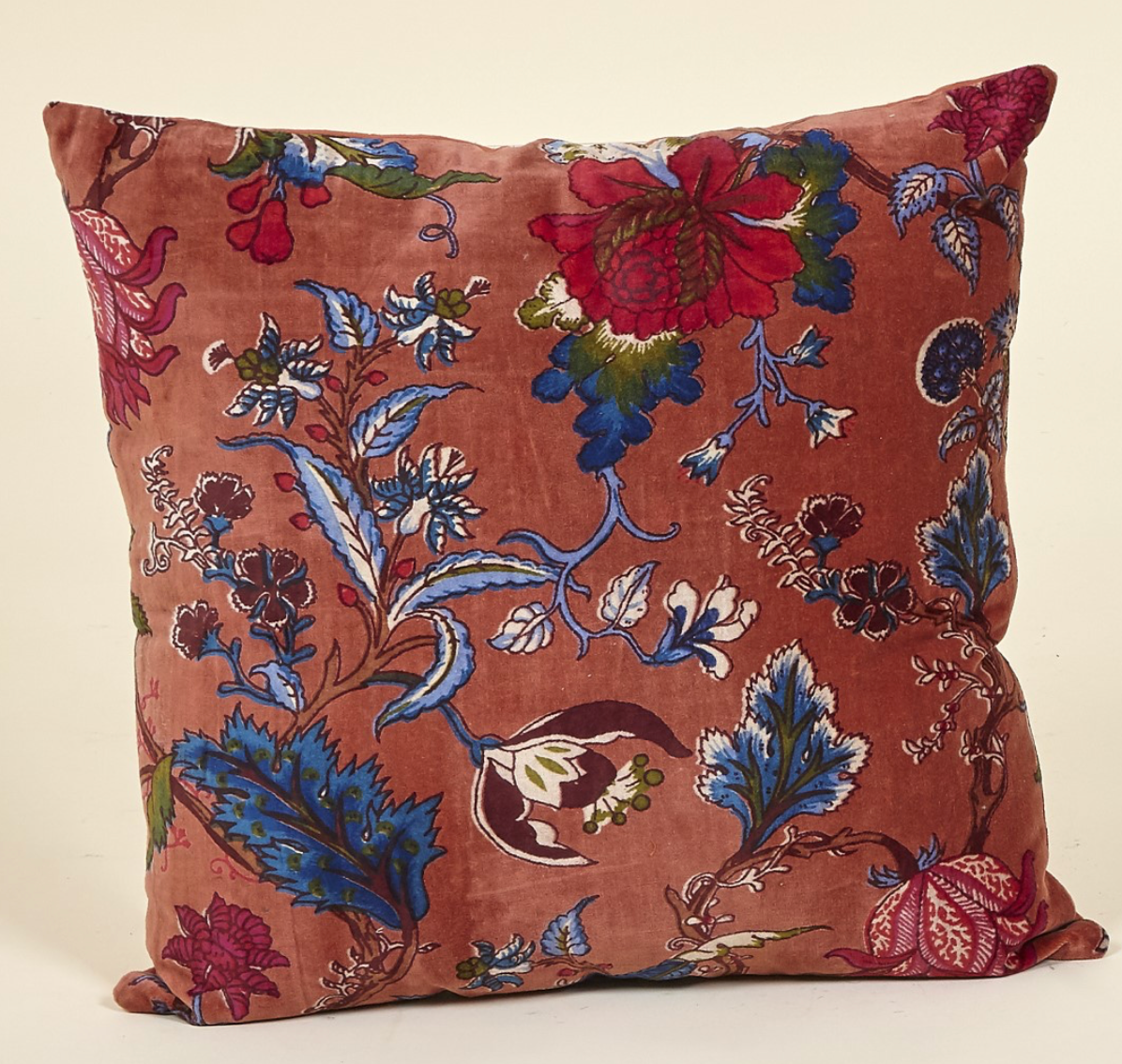 Cojín terciopelo rojizo flores