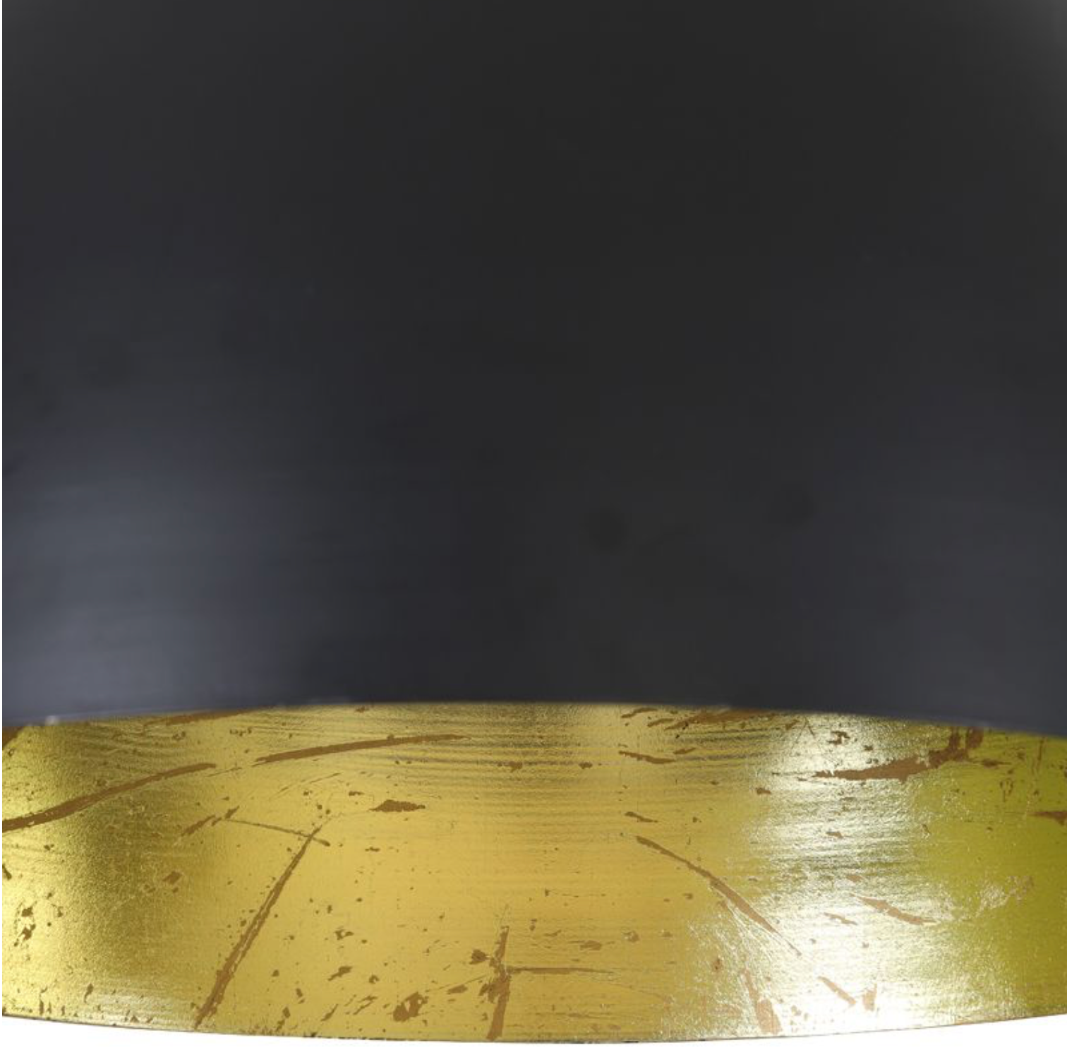 DESCRIPCION: lampara de techo metálica en negro, con el interior de color dorado irregular