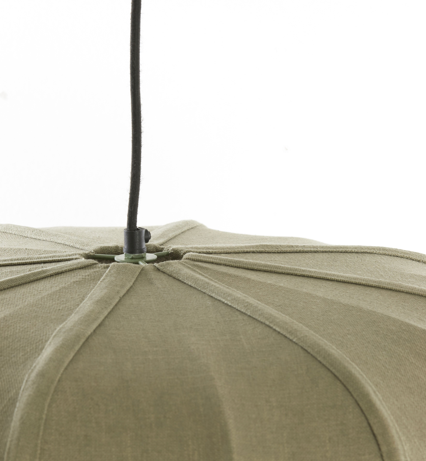 DESCRIPCION: lampara de techo de tela en color verde mate.