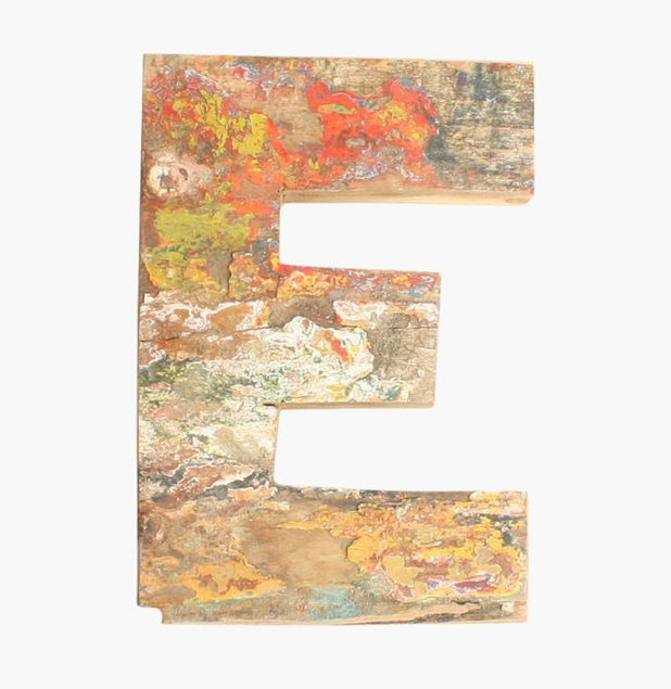 DESCRIPCION: Letras decorativas realizadas con la madera de viejos barcos de pesca. Disponen de un gancho trasero para poder colgar de la pared
